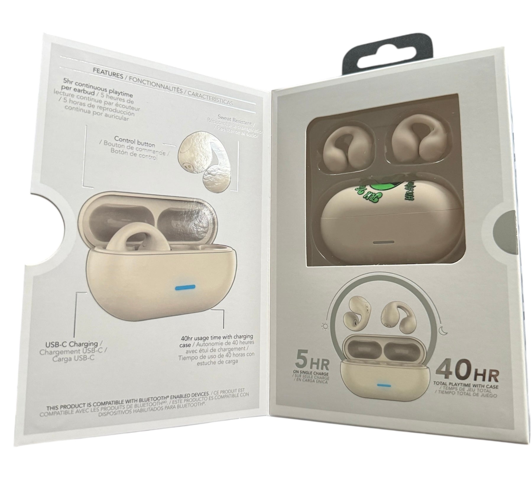 Clip On Ear Buds with 5 hour continous play. Charges in 30 minutes. (C-charger connection)